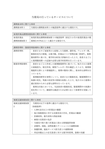 ・当薬局は、オンライン資格確認を行う体制を有しており、患者さまの薬剤情報、特定健診情報その他必要な情報を取得・活用し て、より適切な調剤等に取り組んでいます